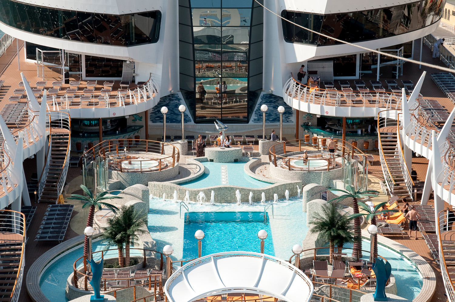 • Experience an endless summer with 5 swimming pools & 12 whirlpools on the outer decks as well as multiple bars so you can keep your toes wet whilst sipping on delicious cocktails.
